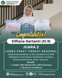 Dengan adanya Program Sekolah Esai ini siswa-siswi SMAN 1 Badegan bisa mengembangkan ide gagasan dan mendapat banyak pengalaman
