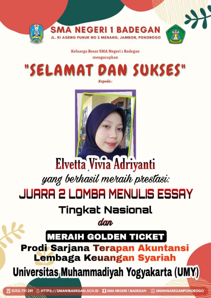 BAHAGIANYA LAGI KEDUA SISWI SMAN 1 BADEGAN DI ATAS JUGA MENDAPATKAN FREE PASS/GOLDEN TIKET MASUK/DITERIMA DI PRODI SARJANA TERAPAN AKUNTANSI LEMBAGA KEUANGAN SYARIAH UNIV. MUHAMMADIYAH YOGYAKARTA (UMY)