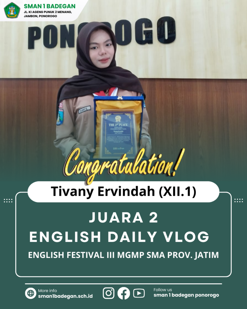 Juara 2 English Daily Vlog “English Festival III” MGMP SMA Prov. Jatim