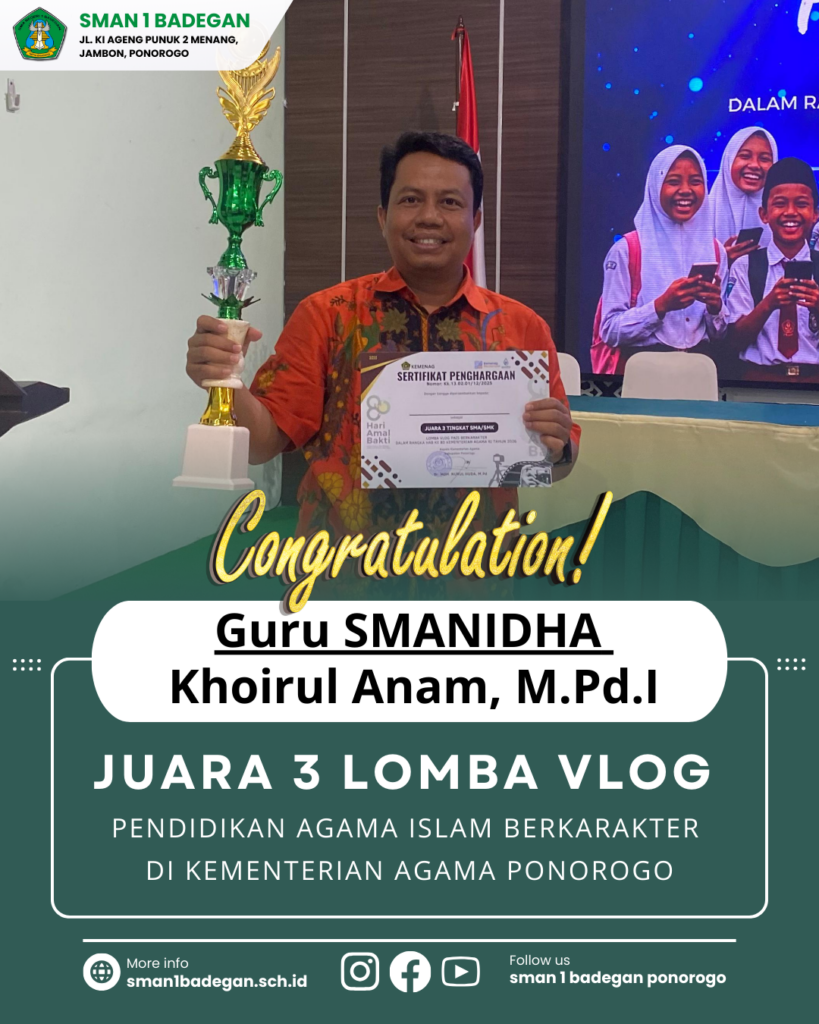 Raih Juara 3 dan Harapan 2 Lomba Vlog di Kementerian Agama Ponorogo