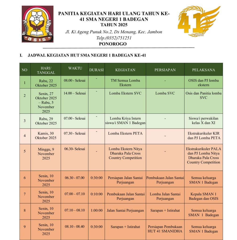 Dalam memperingati HUT SMAN 1 Badegan mengadakan beberapa Event Lomba