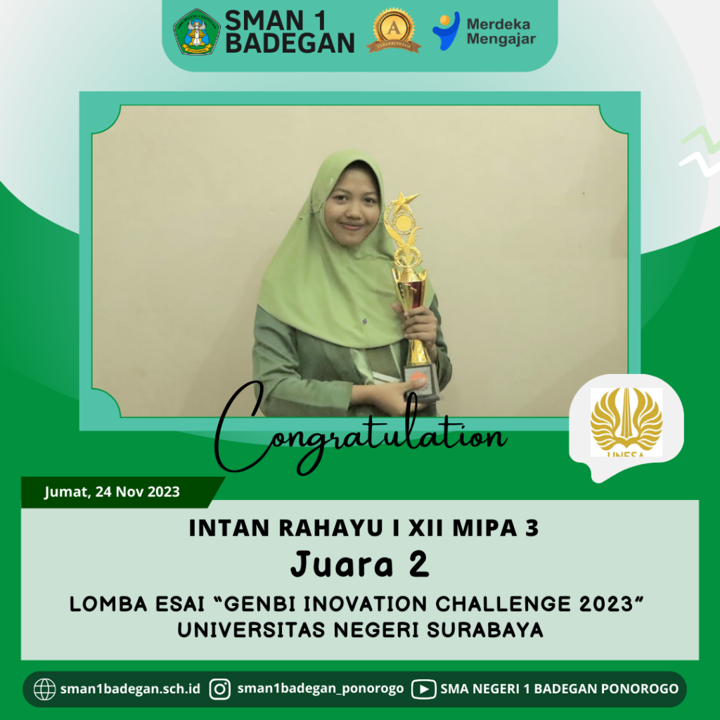 Juara 2 Lomba Esai “GenBi Inovation Challenge 2023” di Universitas Negeri Surabaya