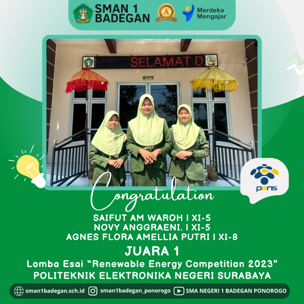 JUARA 1 Lomba Esai “Renewable Energy Competition 2023” di Politeknik Elektronika Negeri Surabaya
