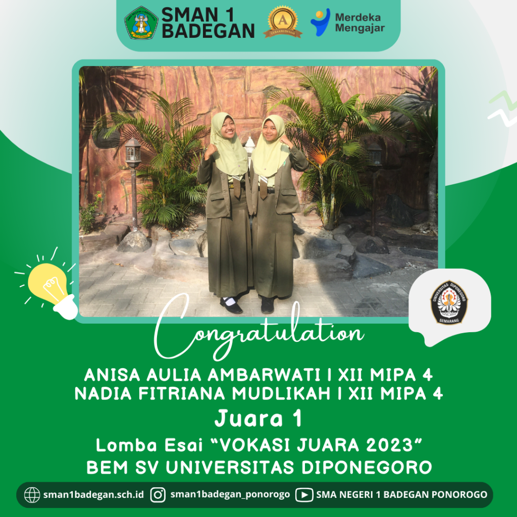 JUARA 1 Lomba Esai “Vokasi Juara 2023” Universitas Diponegoro