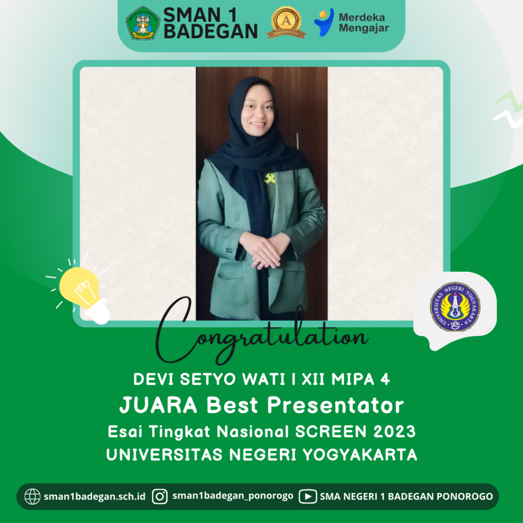 JUARA Best Presentator Esai SCREEN 2023 Universitas Negeri Yogyakarta