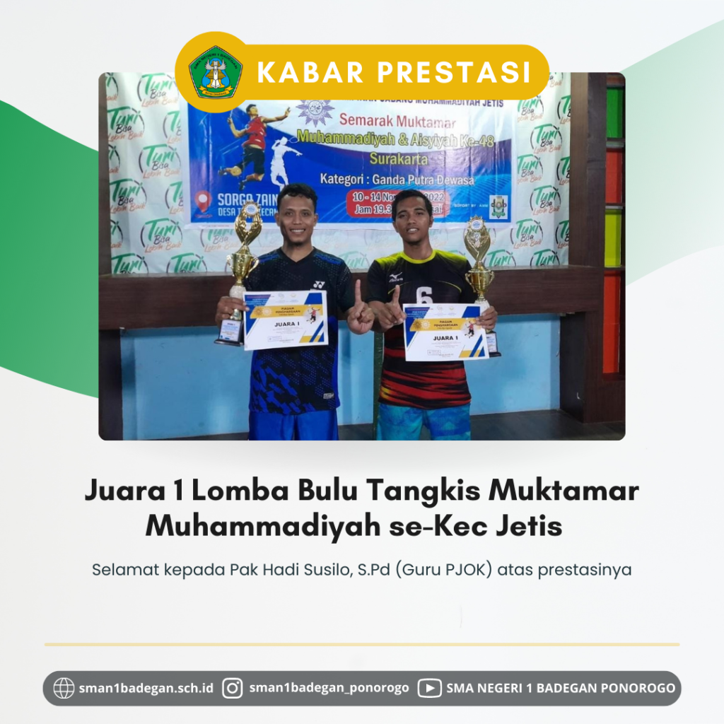 JUARA 1 Lomba Bulu Tangkis Muktamar Muhammadiyah se-Kec. Jetis