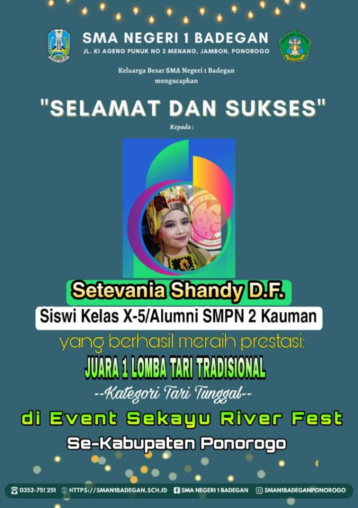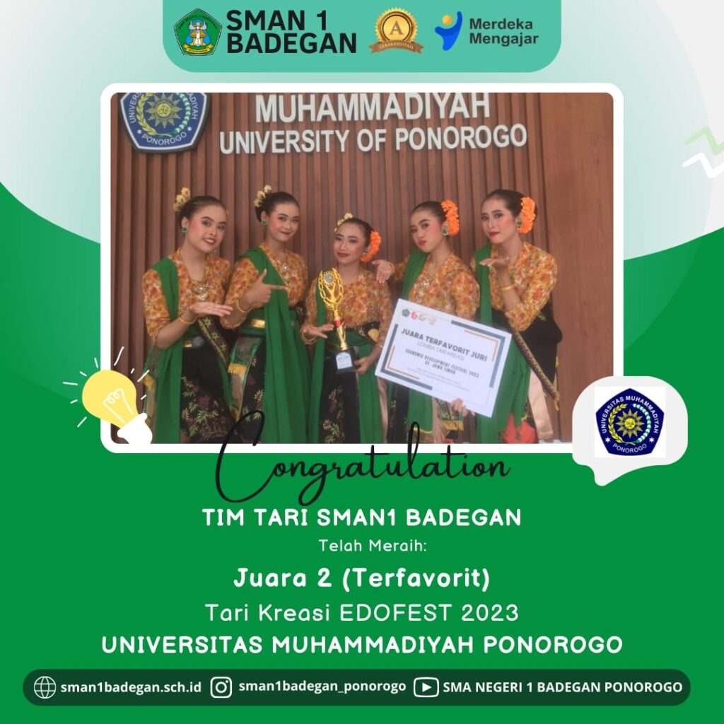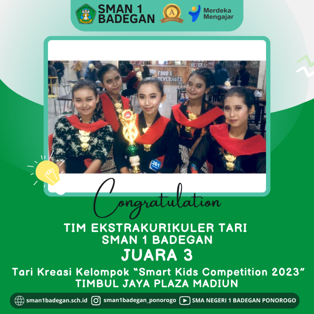 Alhamdulillah, Kamis selalu optimis. Kembali dari Seni Tari smanidha berproses pada masa pandemi, hari ini kamis, 2 Desember 2021 Dapur Seni Tari SMAN 1 BADEGAN PONOROGO berhasil mempersembahkan prestasi membanggakan di Event Art Fest 2021 UHW Perbanas Surabaya pada 13 November 2021 sebagai *JUARA 1 Lomba ART FEST 2021 NADIA PUTRI SETHIANI(XII MIPA 4) AINUL […]